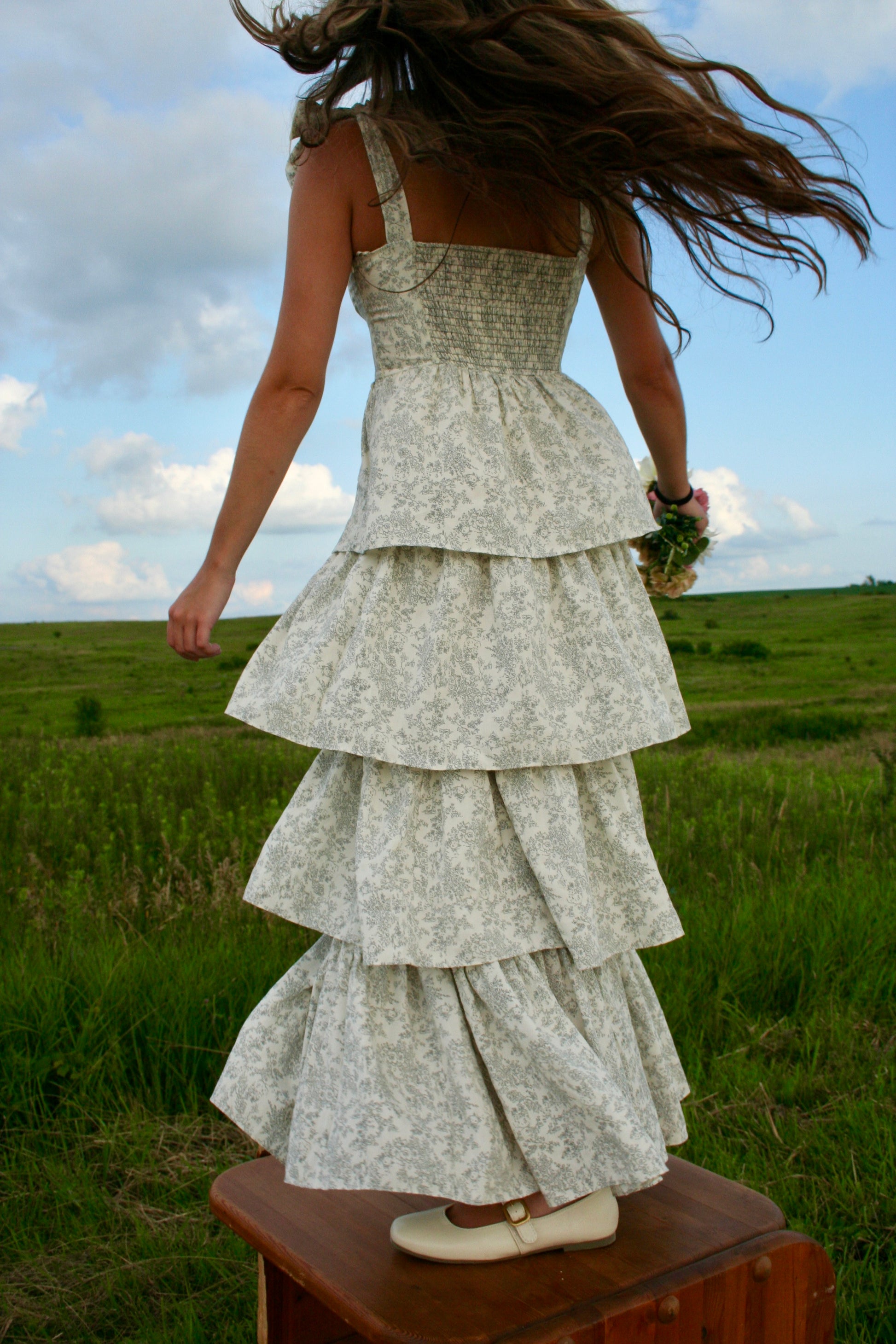 Shoulder ribbon strap maxi tiered dress.